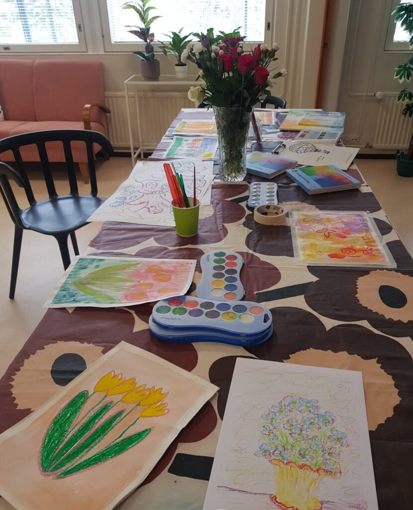 Mä oon nyt saanut pitää tammikuun alusta asti viikottaista taidepiiriä eräässä aikuisten mielenterveys palvelukodissa.